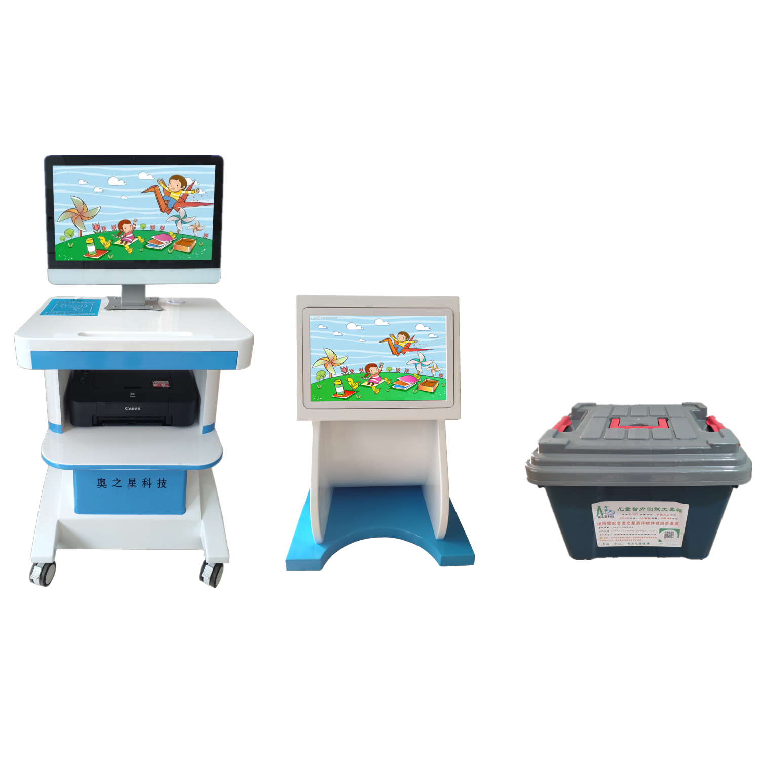 彩色噴墨打印機,豪華醫(yī)用推車,兒童專用操作臺,兒童智力測試工具箱。